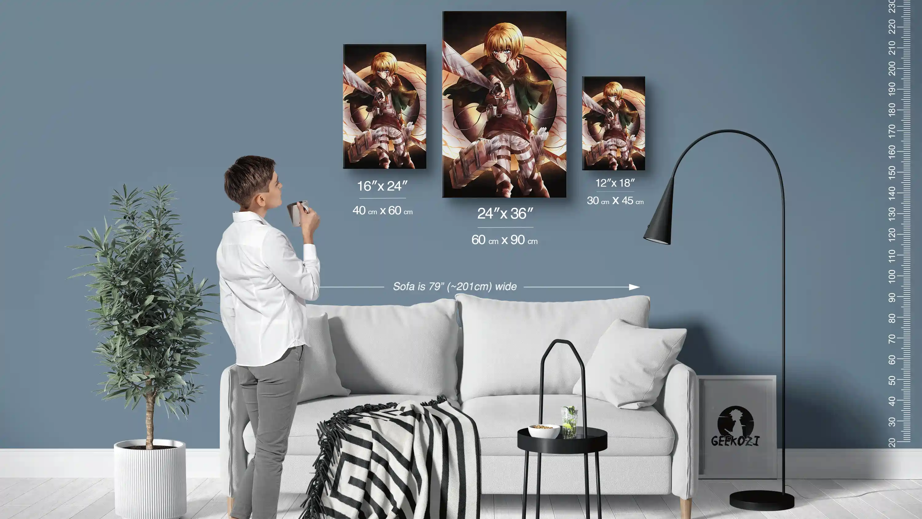 At Geekozi, we take pride in offering a High Quality Printed Metal Poster that showcases stunning anime art in three unique finishes. Choose from Matte Aluminum, featuring a low-glare, smooth look; Brushed Aluminum, which adds a beautiful metallic grain; or Acrylic, with its glossy glass finish providing depth and polished edges. Each piece is crafted using UV-cured, six-colour printing, ensuring sharp detail and vibrant, long-lasting colour. Every poster conveniently ships with a slim magnetic plate and screws, eliminating the need for a frame or drilling through the artwork. Available sizes include 12×18 (30×45 cm), 16×24 (40×60 cm), and 24×36 (60×90 cm), perfect for any wall.