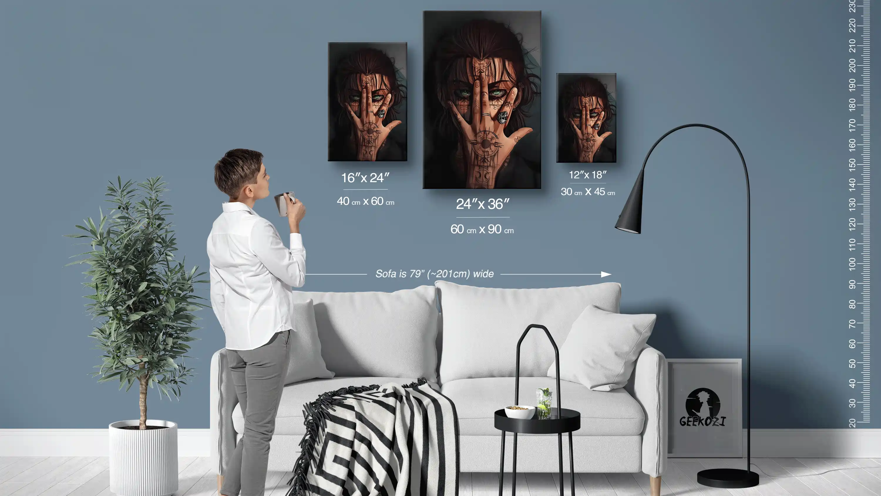 At Geekozi, our distinctive metal poster options are crafted in three finishes to suit your style. Choose from matte aluminum, 3 mm Dibond with a low-glare, smooth look; brushed aluminum, 3 mm Dibond with a brushed silver finish that offers a metallic grain; and acrylic, 4 mm glossy glass that adds depth and polished edges. Each piece features UV-cured, six-colour printing for sharp details and long-lasting color. To make setup easy, each poster ships with a slim magnetic plate and screws, requiring no framing or drilling through the artwork. Available sizes include 12×18 (30×45 cm), 16×24 (40×60 cm), and 24×36 (60×90 cm), ensuring you find the perfect fit for your space.