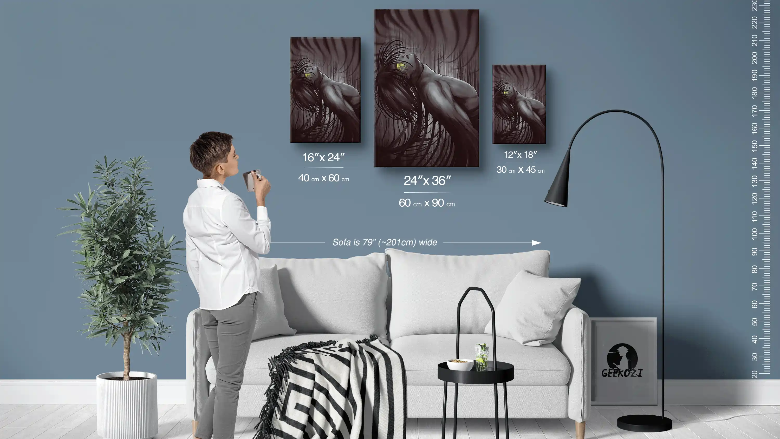 Enhance your space with our striking Poignant Yellow Eyes, available in three stunning panel sizes: 12×18 (30×45 cm), 16×24 (40×60 cm), and 24×36 (60×90 cm). For a better sense of scale, the sofa in the image above measures 79 inches (approximately 201 cm) wide. When choosing the right size, remember that the smallest size works well for desks or smaller areas, while the largest size makes for an impressive focal point on feature walls. Each piece is crafted to bring a unique touch of artistry to your home.