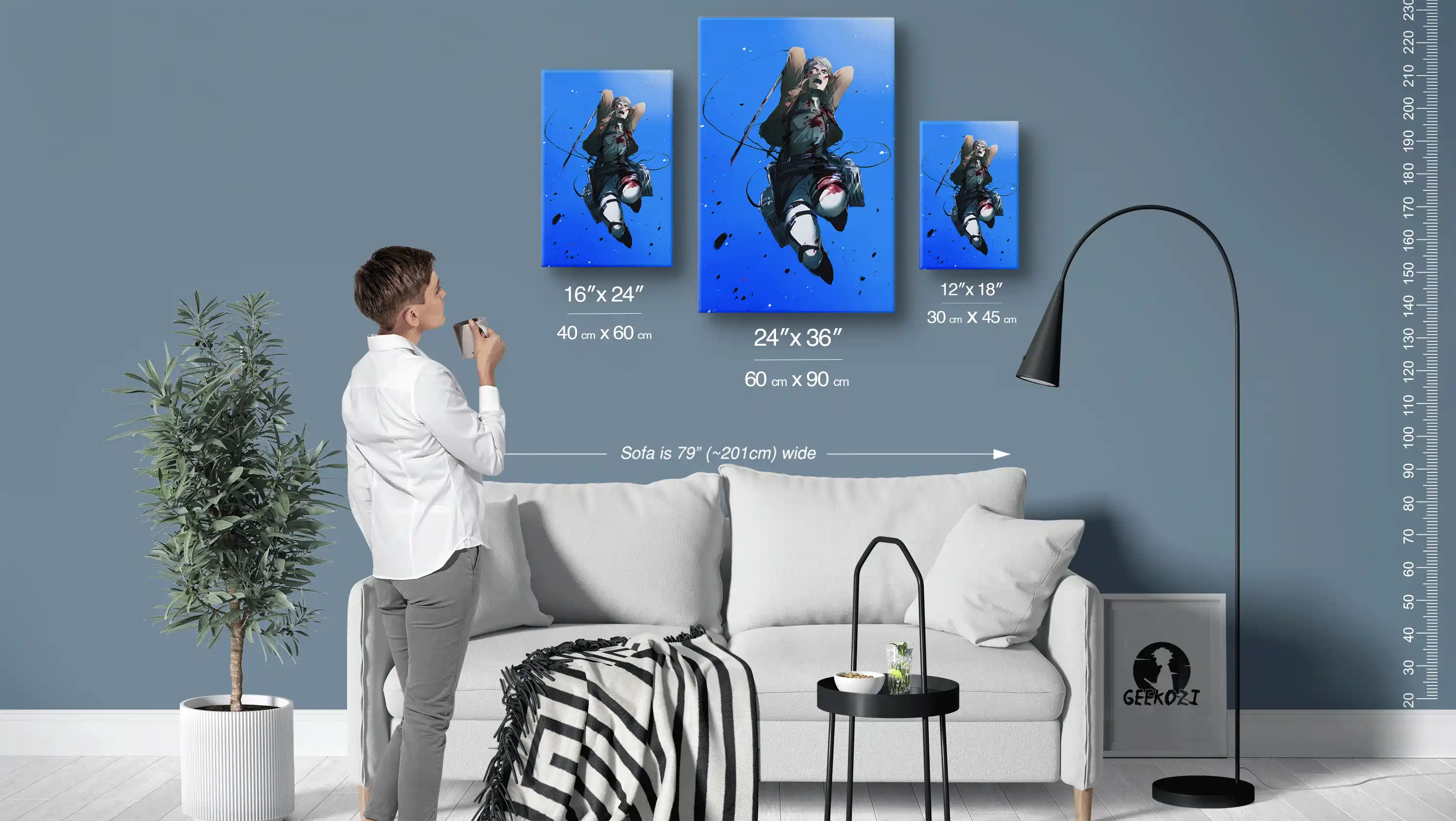 Transform your space with the striking Hopeful Ascent Amid Crimson Skies, available in three panel sizes: 12×18 (30×45 cm), 16×24 (40×60 cm), and 24×36 (60×90 cm). The sofa shown in the image above measures 79 inches (approximately 201 cm) wide, giving you a clear idea of the artwork’s scale in your home. To select the perfect size, consider using the smallest option for desk spaces, while the largest piece makes a stunning statement on feature walls. Let your walls capture attention with this beautiful piece that resonates with the spirit of adventure and hope.