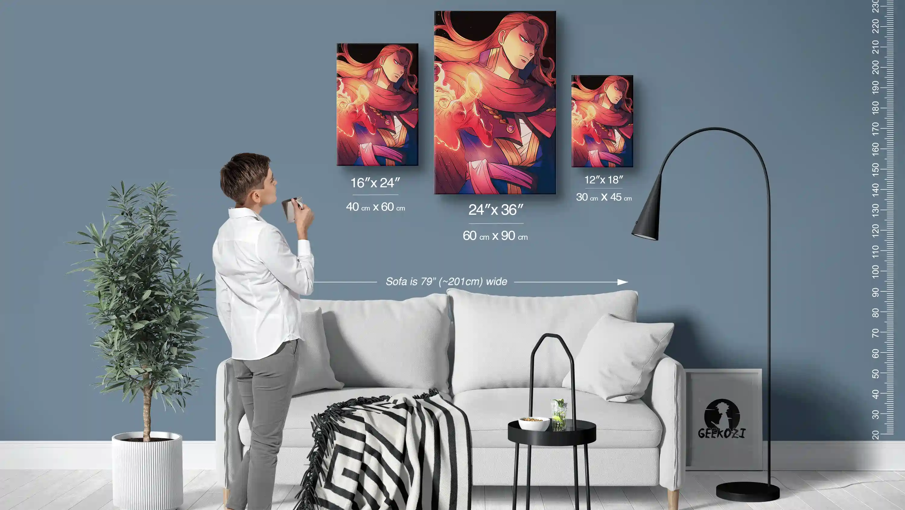 Geekozi offers stunning wall art with three premium finishes to suit your style. Choose from Matte Aluminum, featuring a low-glare 3 mm thick smooth look, Brushed Aluminum with a 3 mm metallic grain finish, or a 4 mm glossy Acrylic that provides extra depth and polished edges. Each printed metal poster is crafted using UV-cured, six-colour printing, ensuring sharp details and vibrant, long-lasting colours. Plus, every artwork comes with a slim magnetic plate and screws included, so there’s no need for a frame or drilling through the piece. Available sizes include 12×18 (30×45 cm), 16×24 (40×60 cm), and 24×36 (60×90 cm), allowing you to find the perfect fit for your space.