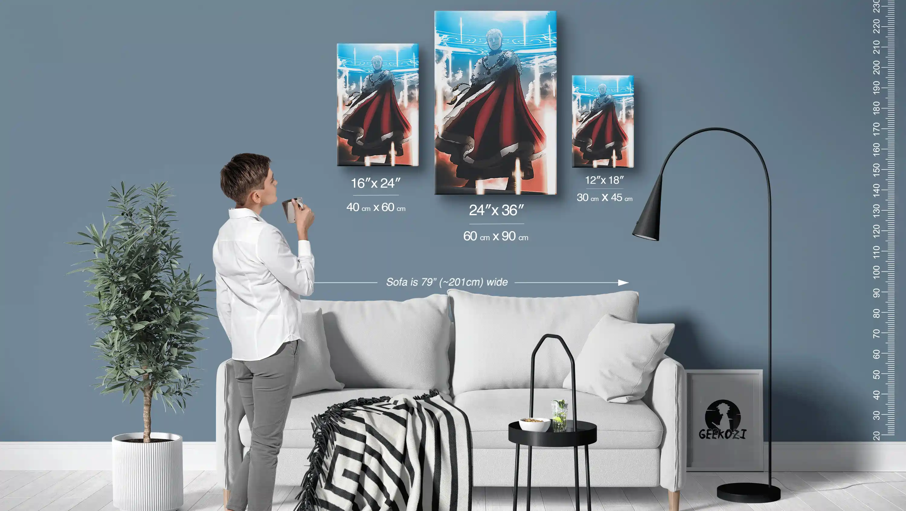 Introducing the Celestial Time Magic Awakening, a stunning piece of art that transforms any space. Available in three sizes, 12×18 (30×45 cm), 16×24 (40×60 cm), and 24×36 (60×90 cm), it can fit perfectly in different settings. To help you visualize the scale, the sofa in the image above measures 79 inches (approximately 201 cm) wide. For small desks or cozy corners, the smallest size works well, while the largest size makes a striking statement on feature walls, allowing this breathtaking design to shine in your home.