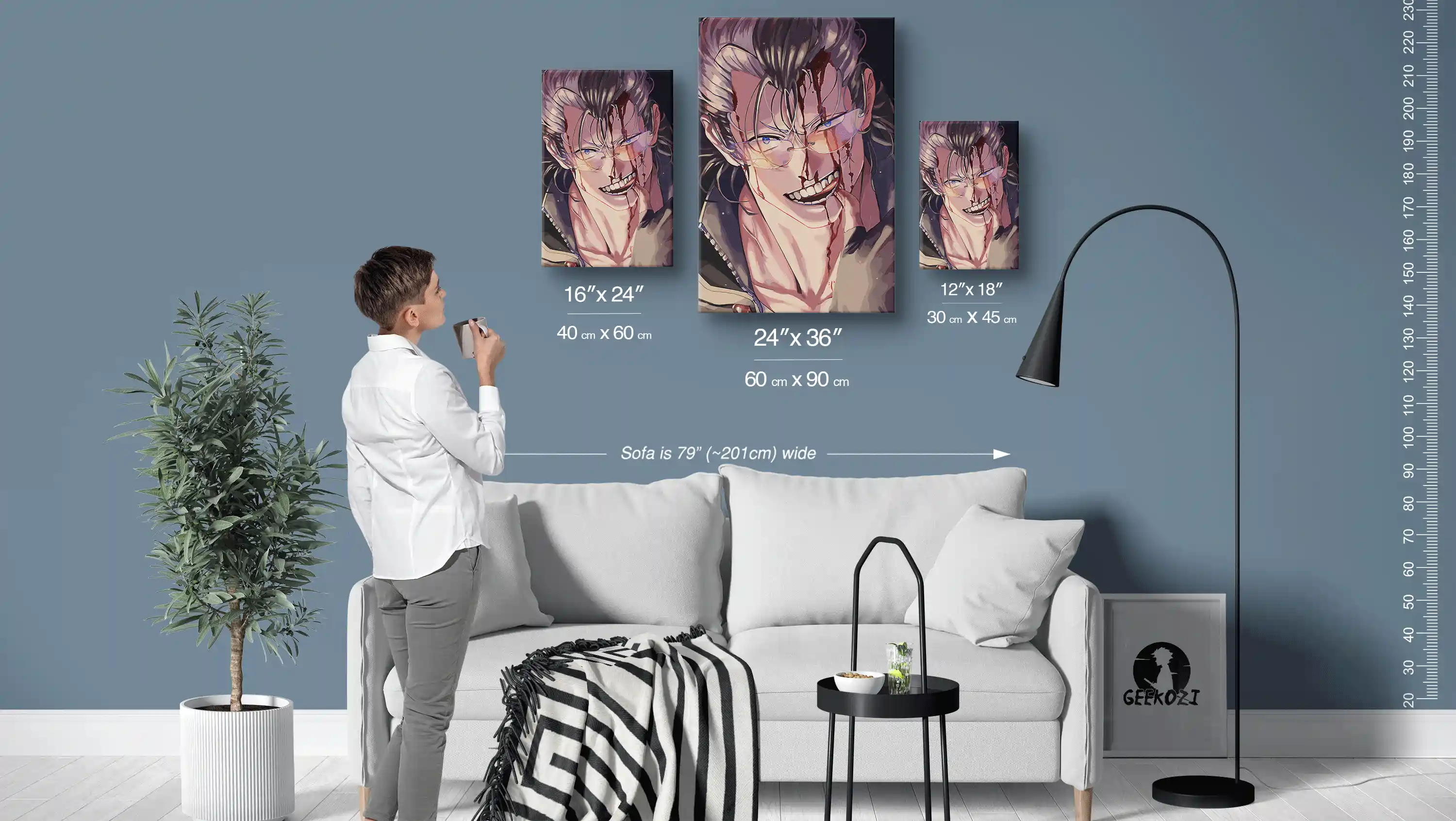 Our high quality metal print collection features three stunning finishes to bring your favorite anime art to life. Choose from Matte Aluminum, a 3 mm aluminum Dibond with a low-glare, smooth look; Brushed Aluminum, a 3 mm brushed silver Dibond that adds a modern metallic grain; or Acrylic, which boasts 4 mm glossy acrylic glass for extra depth and polished edges. Each piece showcases UV-cured, six-colour printing for sharp detail and long-lasting colour. Every print ships with a slim magnetic plate and screws for easy hanging, no frame or drilling through the artwork needed. Available sizes include 12×18 (30×45 cm), 16×24 (40×60 cm), and 24×36 (60×90 cm).