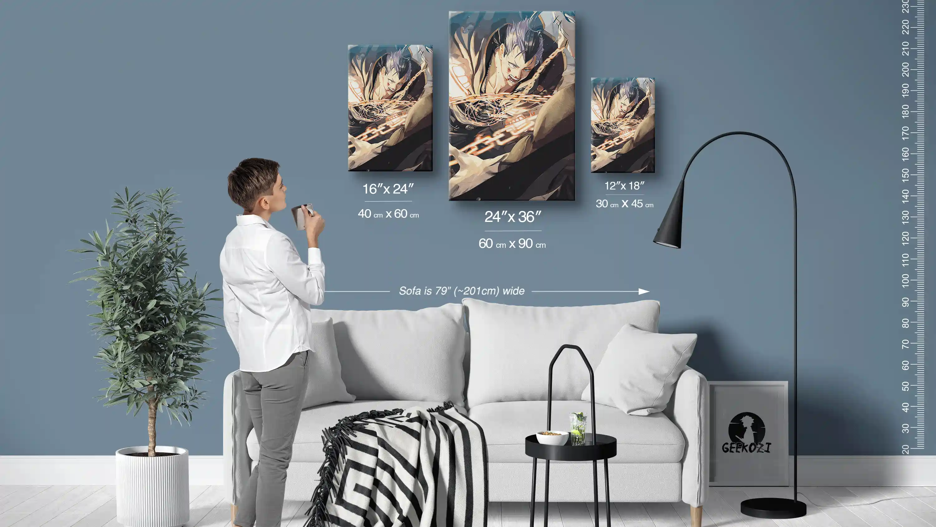 Discover the excitement of our Thrilling Fireball Clash art piece, available in three sizes: 12×18 (30×45 cm), 16×24 (40×60 cm), and 24×36 (60×90 cm). The sofa in the image above is 79 inches wide, which can help you visualize the scale of your new art. For smaller spaces like desks or cozy nooks, the 12×18 size works perfectly, while the 24×36 option makes a striking statement on larger feature walls. Choose the size that best fits your space and reflects your style.