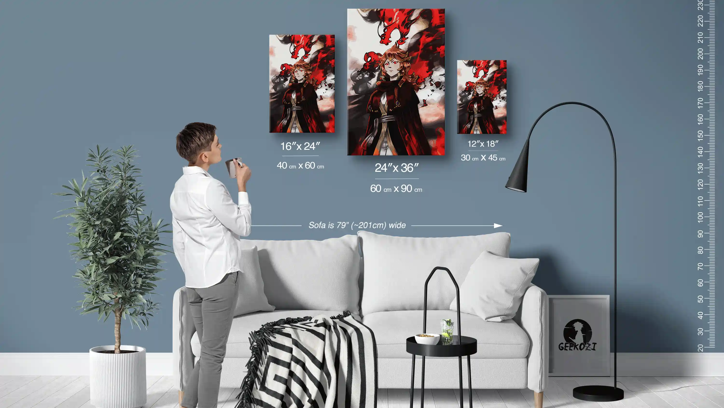 At Geekozi, we offer high quality printed metal wall art that brings your favorite anime visuals to life. Choose from our three stunning finishes: Matte Aluminum, featuring 3 mm aluminium Dibond with a smooth, low-glare look; Brushed Aluminum, which has a 3 mm brushed silver finish that adds a metallic grain; and Acrylic, crafted from 4 mm glossy acrylic glass for extra depth and polished edges. Our UV-cured, six-colour printing ensures sharp detail and vibrant, long-lasting colour. Each piece comes with a slim magnetic plate and screws for easy hanging, no need for frames or drilling through the artwork. Available sizes include 12×18, 16×24, and 24×36, providing options to fit any space.
