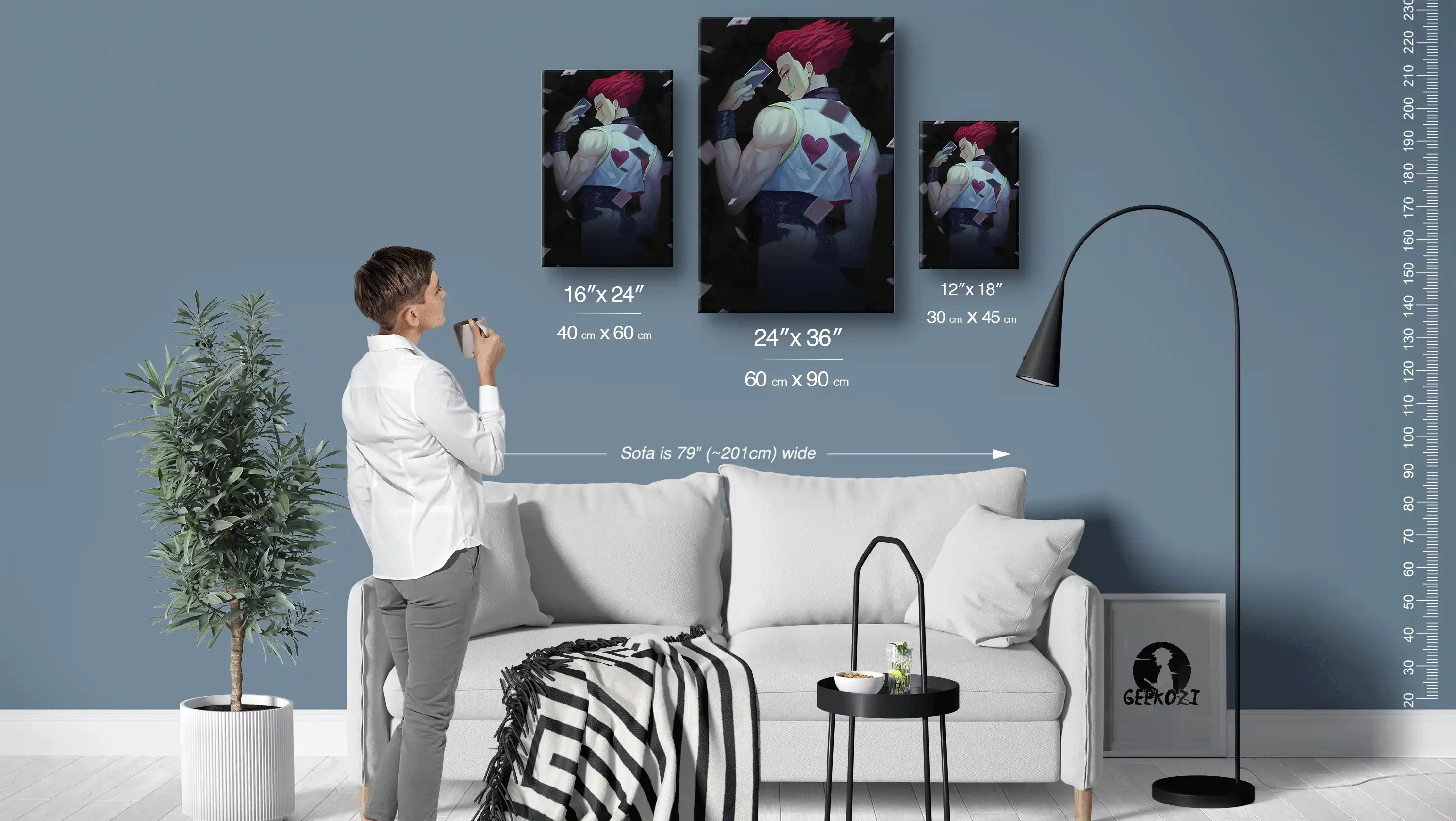 Introducing the Intrigue Swirling Playing Cards, a stunning piece of wall art available in three convenient panel sizes: 12″×18″ (30×45 cm), 16″×24″ (40×60 cm), and 24″×36″ (60×90 cm). To help you visualize the art in your space, the sofa in the image above is 79 inches (approximately 201 cm) wide. For a cozy nook or desk, consider the smallest size, while the largest would make a bold statement on a feature wall. This versatile piece brings a unique flair to any room, ensuring that your decor reflects your personality.